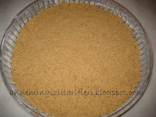 Borcam tabanı margarin ile yağlanır. Bisküviler ezilerek toz haline getirilir ve borcamın tabanına yayılır. Bastırıp sıkıştırılarak kekin tabanının oluşması sağlanır.
